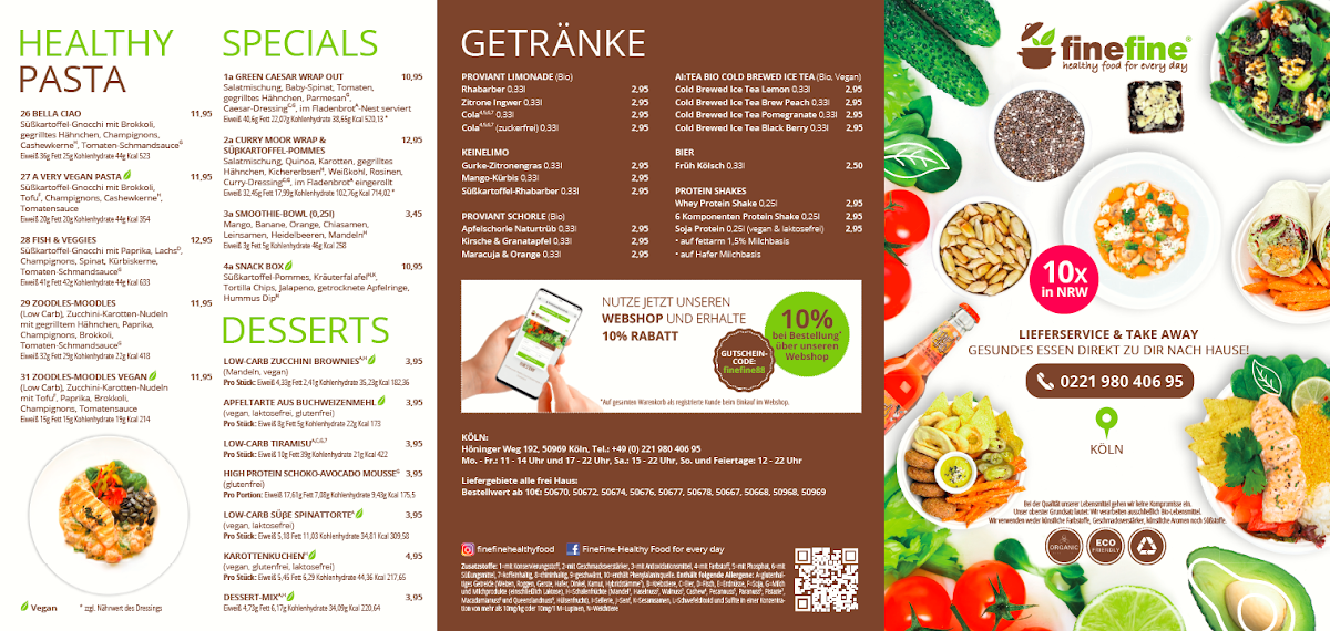 Welcome to finefine - Healthy Food Koln, where nutritious meets delicious! Nestled in the heart of Koln at Honinger Weg 192, this culinary gem is dedicated to serving fresh, wholesome meals. The menu features a delightful selection of vegan options, with standout dishes like the varied vegan pasta and bowls that customers rave about.